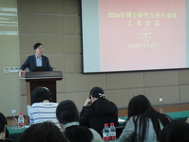 2016年4月22日,浙江大学2016年博士研究生招生录取工作会议在校友楼紫金港厅顺利召开。副校长严建华、研究生院副院长王立忠、研究生招生处处长朱原、学院(系)分管研究生工作的院长(主任)、书记和研究生科科长以及相关职能部门负责人参加了会议。会议由王立忠副院长主持。
