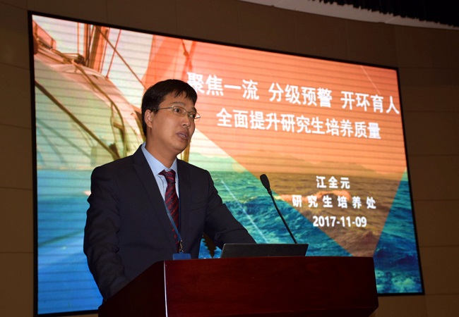 王立忠院长首先以“光荣与梦想”为题阐述了我校研究生教育的历史与现状、规模与质量以及挑战与出路。结合我校“三步走”战略,他强调了全人教育的理念,提出应以培养具有求是创新精神和国际视野的拔尖创新人才和未来领导者为目标,打造卓越的研究生教育品牌,并进一步提出八大举措:一、谋划布局浙江大学的创新战略领域和学科方向;二、改革招生选拔机制,提高博士生源质量;三、加强课程体系建设,实施“博士生学术新星计划”;四、探索专业学位培养新模式,着力建设工程师学院;五、科教融合,促进多学科交叉人才培养;六、汇聚高端国际教育资源,探索国内教育国际化;七、构建高质量的研究生思政教育体系;八、建设基于大数据分析的教育教学质量评价与预警平台。