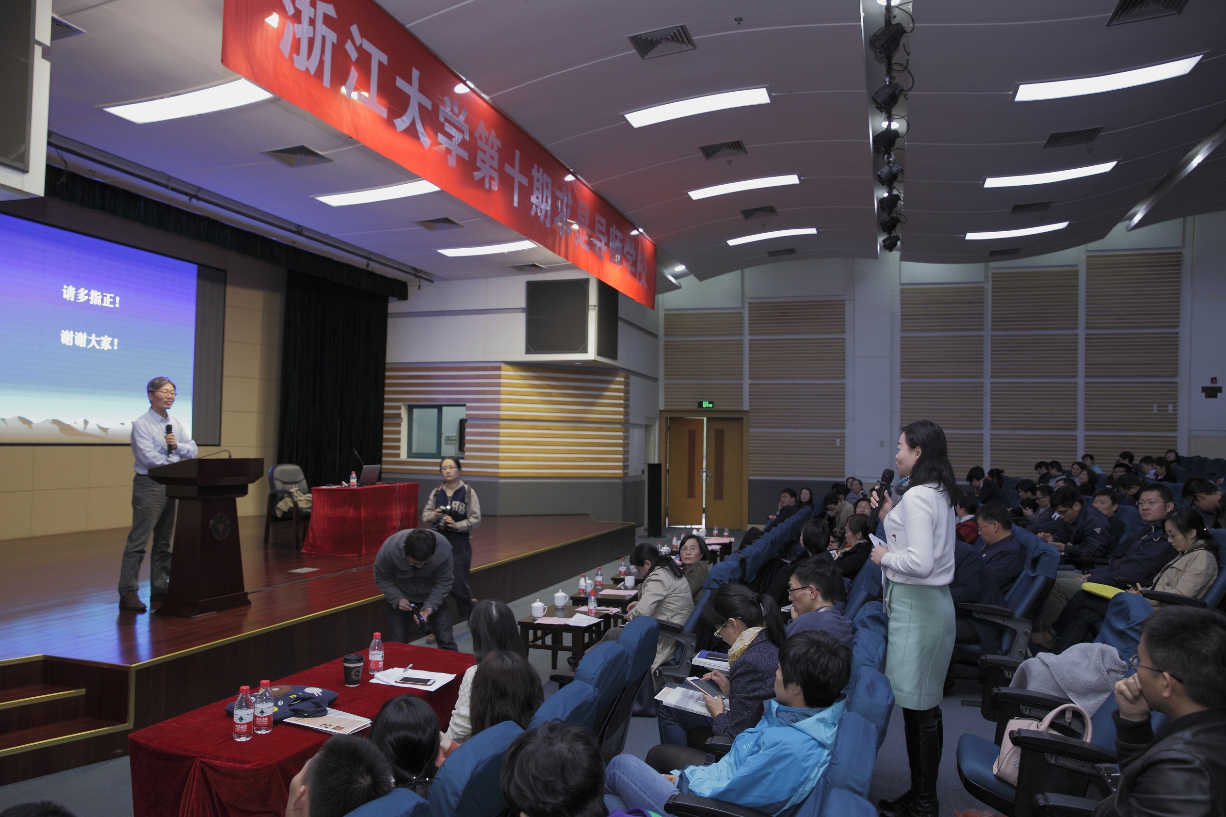 周天华院长就下午场会议作总结发言。首先对杨院士和黄教授的精彩报告表示衷心的感谢!他表示:导师是培养高素质的创新性人才的关键,希望各位新上岗导师充分认识到这个岗位的重要意义,努力为实现中华民族伟大复兴的中国梦培养更多优秀人才。希望各位导师今天都能有所收获,未来大家共同努力,建设一支“信念坚定、师德高尚、业务精良”的导师队伍,助力浙大双一流建设!