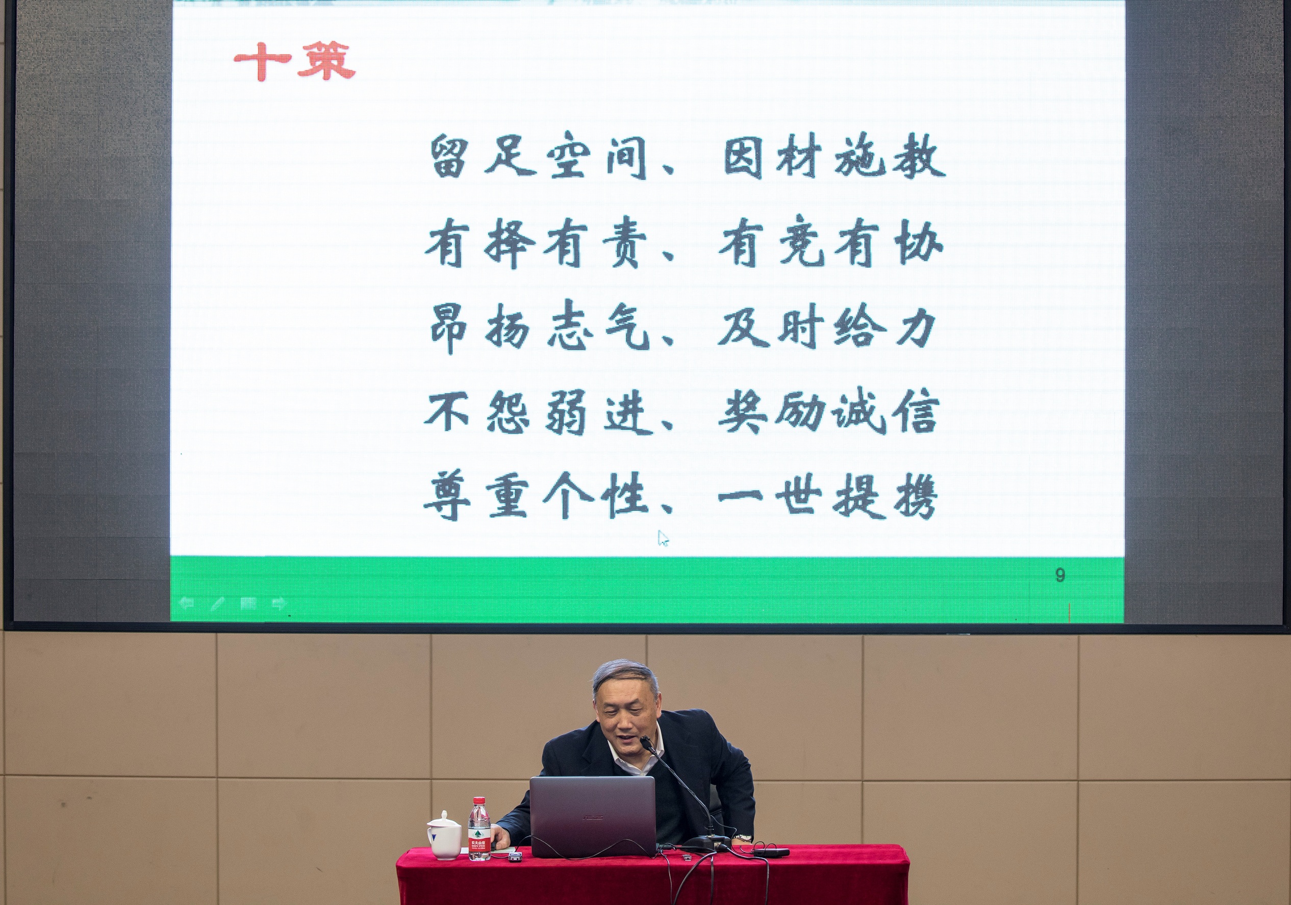 杨卫院士以“导师十策”为题,围绕自己与所培养研究生的点滴小事和相处之道侃侃而谈,生动传达了“留足空间、因材施教、有择有责、有竞有协、昂扬志气、及时给力、不怨弱进、奖励诚信、尊重个性、一世提携”的十大策略,为新上岗导师如何教导好学生出谋划策。他指出:桃李满天下是学者的最高境界,但要讲究质量而不是数量。在人才培养的过程中,学生的潜力不可估量,看似资质平平,也许后面的发展会出人意料,不要给学生设置“天花板”,“提笼遛鸟”、适时矫枉、前推后拉、鼓疏有度都是有效的培养手段。一日为师,终身为师,学生毕了业不代表你们的师生关系到此结束,而是另一个新的起点,保持友好沟通、师徒情谊长存,学生发展好对导师来说是最值得骄傲的功德,也是一名导师是否优秀的最好证明。