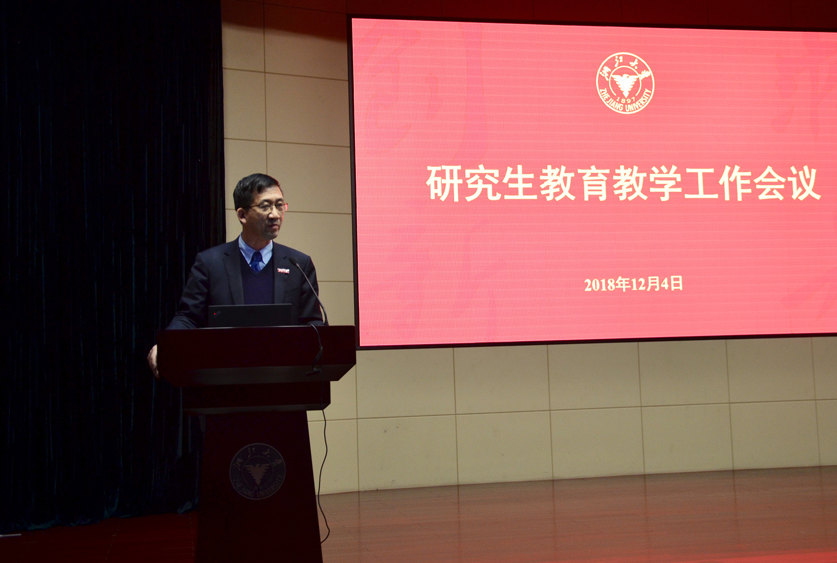 为全面贯彻落实党的十九大及全国教育大会、全国高校思想政治工作会议精神,深入贯彻落实学校第十四次党代会精神,浙江大学2018年研究生教育教学工作会议于12月4日在紫金港校区临水报告厅召开。本次会议以习近平新时代中国特色社会主义思想为指导,聚焦博士研究生教育综合改革,就研究部署面向2020年的卓越研究生教育计划进行了探讨与交流。会议由研究生院副院长叶恭银主持。