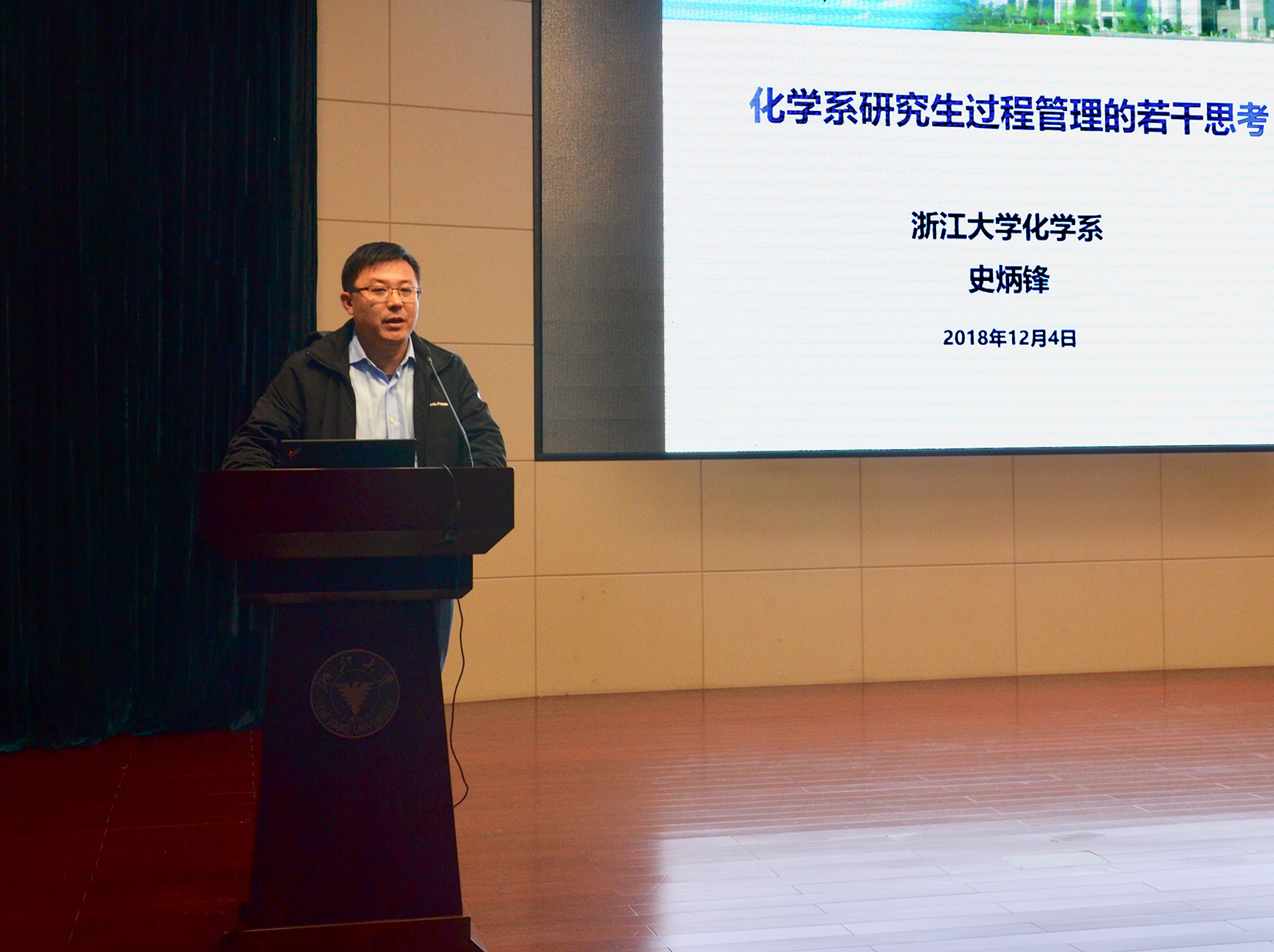 化学系副系主任史炳锋发言