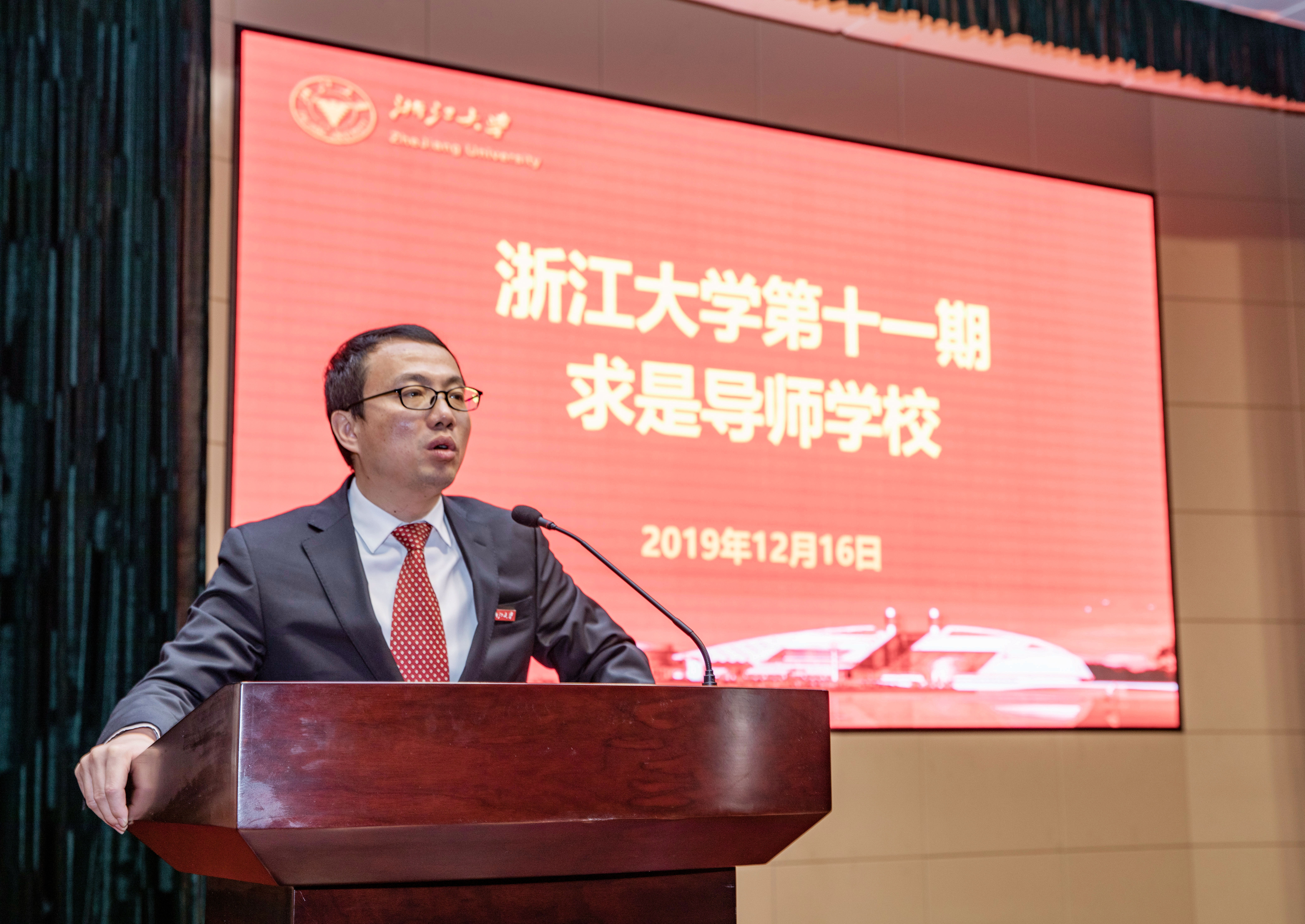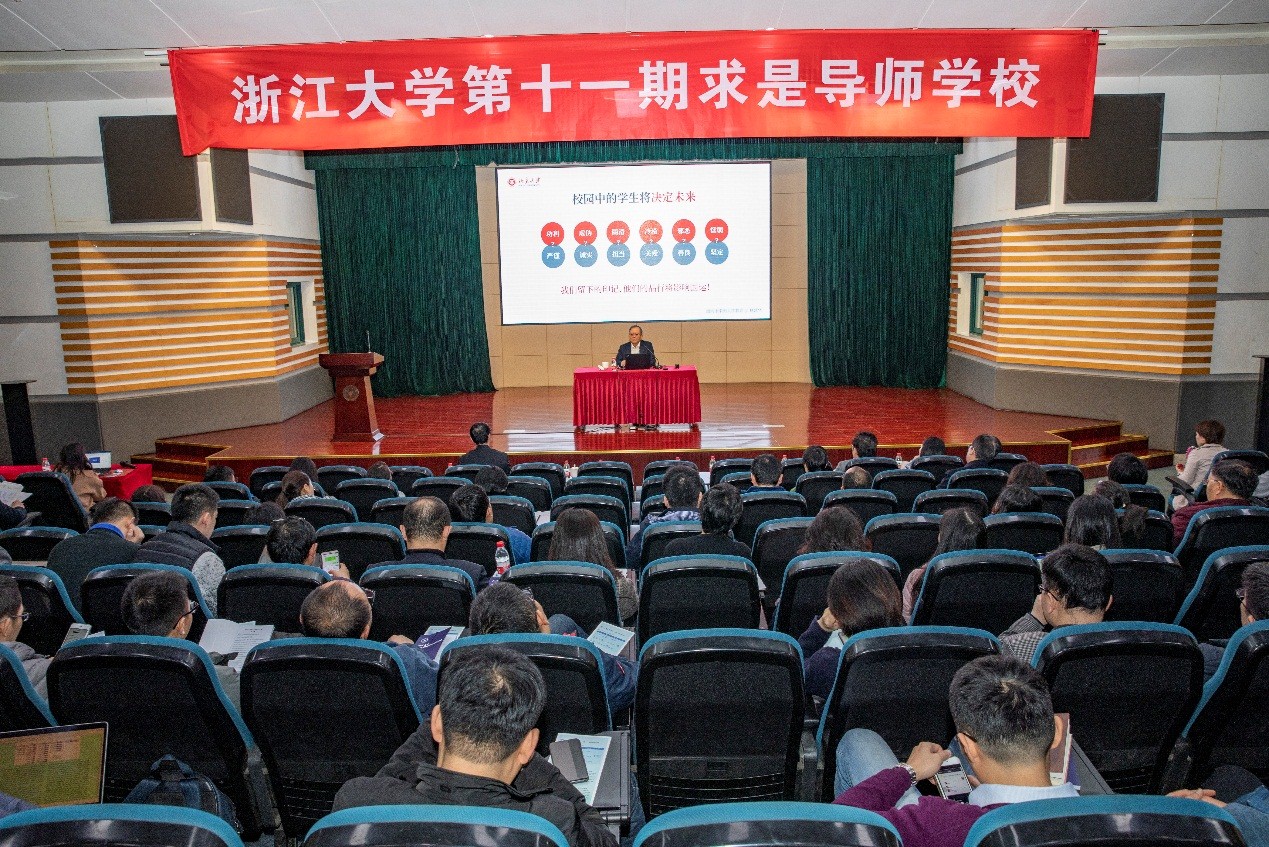 为深入学习贯彻习近平新时代中国特色社会主义思想,认真落实党的十九大、全国高校思想政治工作会议、全国教育大会和学校第十四次党代会精神,结合“不忘初心、牢记使命”主题教育活动,进一步落实研究生导师立德树人的根本职责,切实加强师德师风建设,努力建设一支“政治素质过硬、业务能力精湛、育人水平高超”的导师队伍,2019年12月16日,浙江大学第十一期求是导师学校在紫金港校区临水报告厅隆重开班。