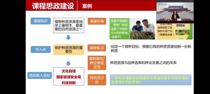 本次交流活动会议是农学院首次以在线形式开展“课程思政”专题培训活动,为广大教师做好“课程思政”工作提供了有益借鉴和启示。与会教师相聚云端学习仅仅是农学院“课程思政工作坊”工作的开端,学院将继续提高站位,以更加务实的态度,以更加有效的措施,重点抓好分类分层推进、教师能力提升、资源共建共享等工作,纵深推动课程思政高质量建设,建设更高水平人才培养体系,培养更多德才兼备的高层次农科创新人才。