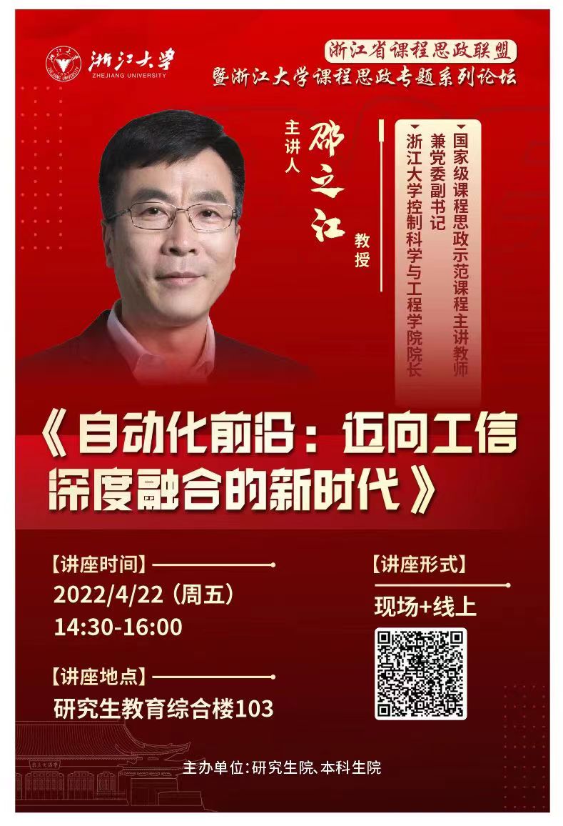 主讲人:    浙江大学控制科学与工程学院院长兼党委副书记 、国家级课程思政示范课程主讲教师 邵之江教授