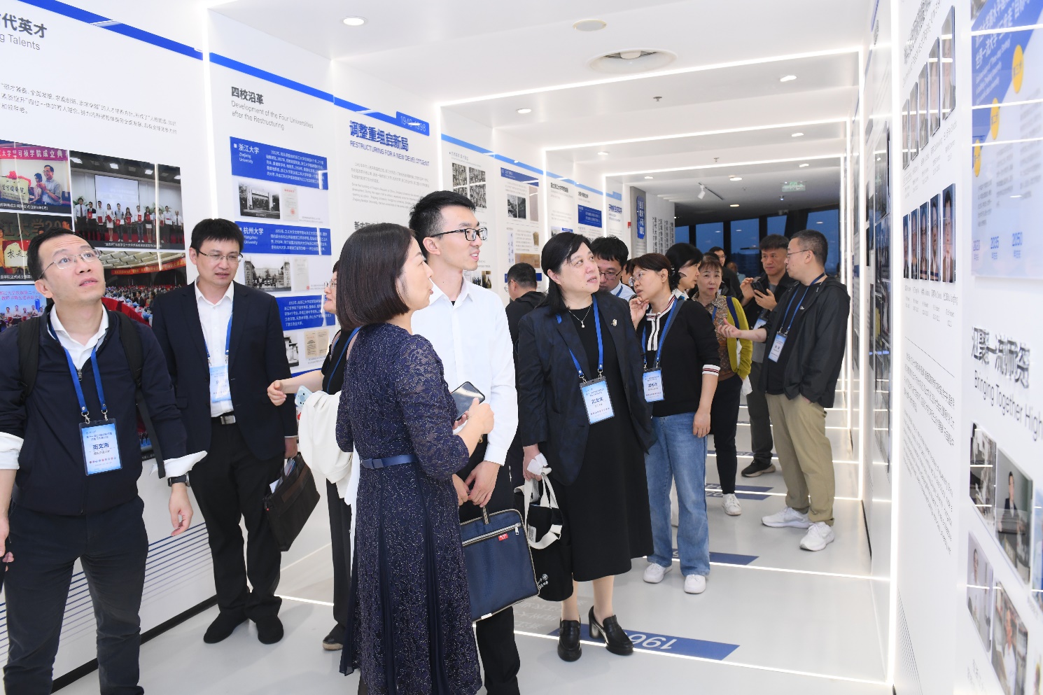 与会期间,参会代表们在国际校区党委常务副书记、副院长屈丽娟陪同下,参观了国际校区展示中心,展示中心由“百年荣光,弦歌不辍”“海纳百川,开放办学”“天下来同,追求卓越”“创新特区,发展引擎”“守正创新,开放包容”“勇立潮头,成就样板”“一路同行,感恩有你”七个篇章组成,全景式呈现了浙江大学120多年的建设发展史,全方位记录了国际校区建设办学情况,全体师生同心同行同奋进的开拓历程。