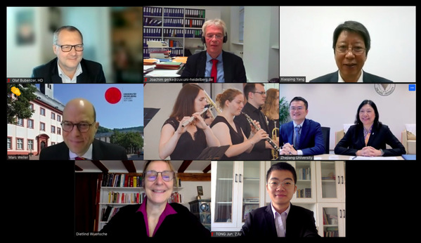 On October 26, Prof. HE Lianzhen, vice president of Zhejiang University, and Prof. Marc-Philippe Weller, vice-rector for International Affairs at Heidelberg University, signed an agreement for a student exchange program by video link.