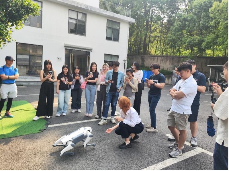 On April 29, over 20 Chinese language students visited the Rocktiger-Hill Robot Innovation Base. Students witnessed cutting-edge AI achievements like the amphibious robot and “Jueying Lite3”robotic dog, sparking their interest and global admiration for China’s smart tech innovations.